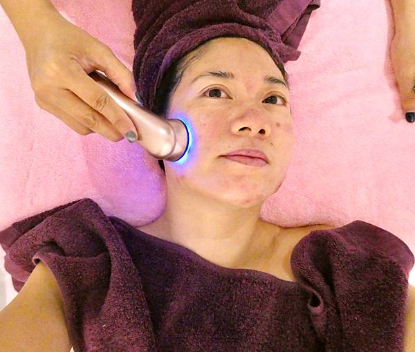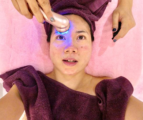 第三步驟:儀器導入精華液,因為我是「加強保濕課程」會再幫Jessica多做一個照光的動作。