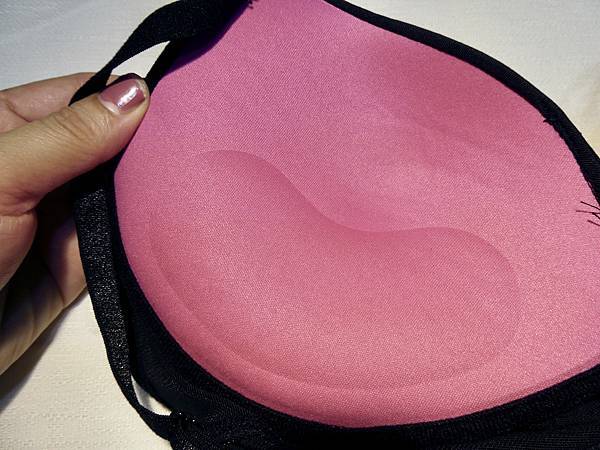獨家設計的魔豆型罩杯,是下厚上薄的記憶綿罩杯,讓胸型可以更美。