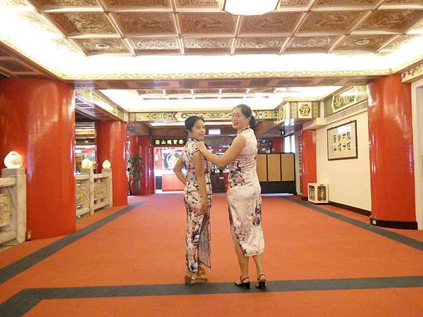 這是Jessica挑選的旗袍,穿起來超有美感,我這次邀約的朋友是學畫的,又是一個畫家,我想說她應該很了解色彩學,因此請她特別為我們挑選旗袍顏色搭配圓山飯店拍出好看的照片增添我們的回憶。