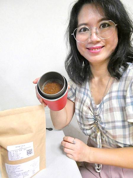 Jessica購入「兩半磅創始咖啡Genesis coffee」就是要把一包放在公司,一包放在家裡,公司有個人隨手杯,那個杯子很方便,可以手磨咖啡,濾杯,直接就可以透過熱水瓶沖泡出一杯好喝的咖啡,在家裡就可以真正享受手沖,所以家裡也丟一包。