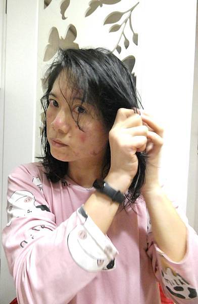 免沖洗的護髮,只需要使用在髮絲(髮尾),滋潤頭髮髮絲,使髮絲在多一層保護,最後在吹乾頭髮即可。