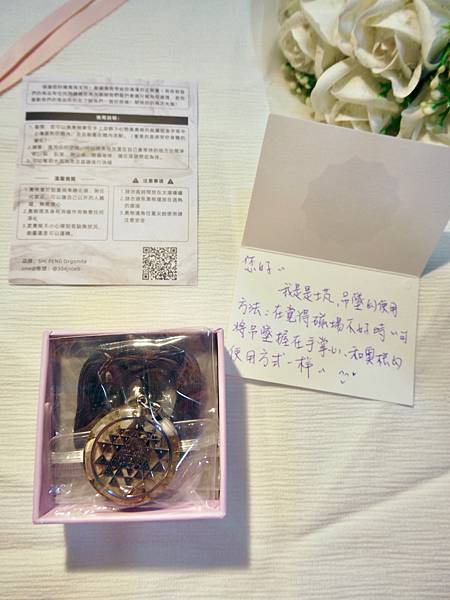「士芃手作奧根」出貨真的很用心,收到商品是包裝很精美,還很完善,裡面「奧根能量水晶」是用禮盒包裝的,上面還有緞帶,「奧根水晶」用一個小袋裝,「鍊子」也用一個小袋裝,裡面還有手寫小卡片很貼心,告訴Jessica使用方法,還有一張保養與保固書。