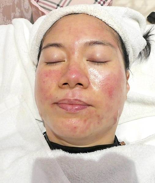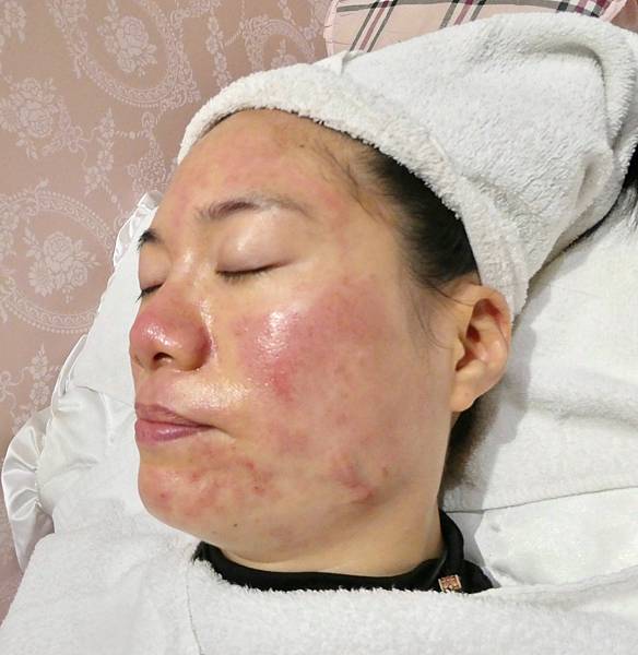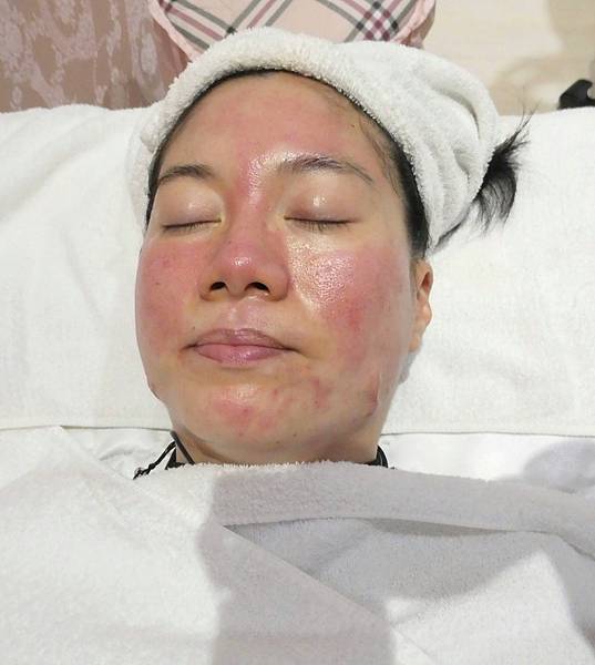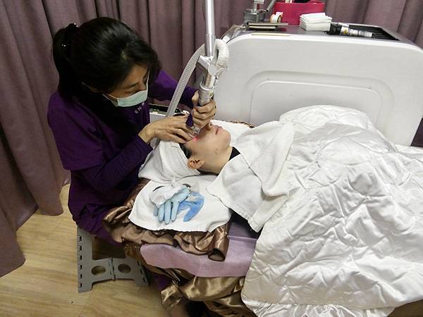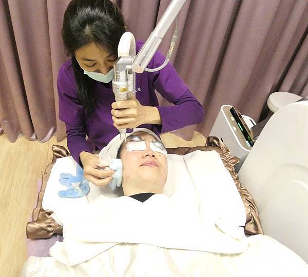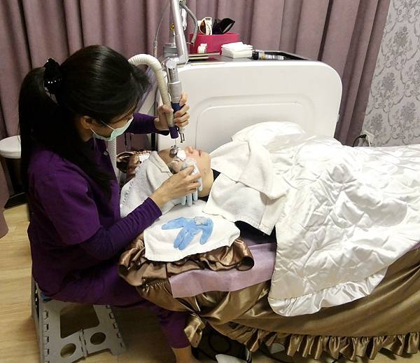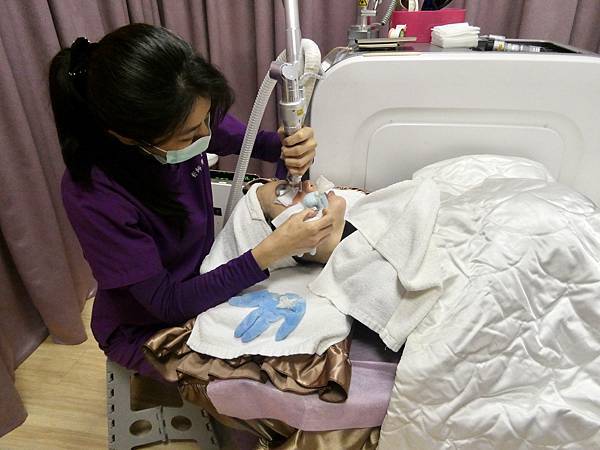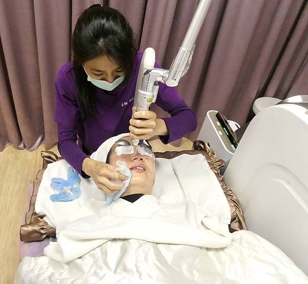 邱醫師先幫Jessica做全臉的皮秒雷射,旁邊還有放冰塊,很細心的在旁邊告訴妳,流程。