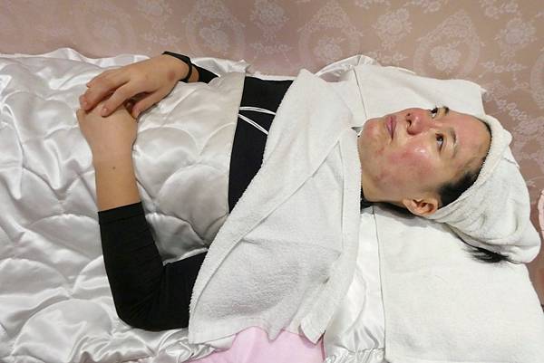 美容師一開始先幫妳清潔肌膚卸妝洗臉。