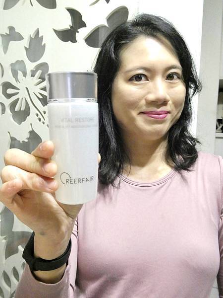 「VITAL RESTORE活力保濕賦活露100ml」,Jessica上化妝水不喜歡用化妝棉,Jessica喜歡用手,而且手有溫度,可以在拍打化妝水時利用水的溫度,在加強保濕,賦活露使用2次。