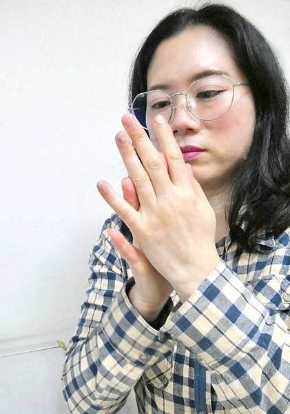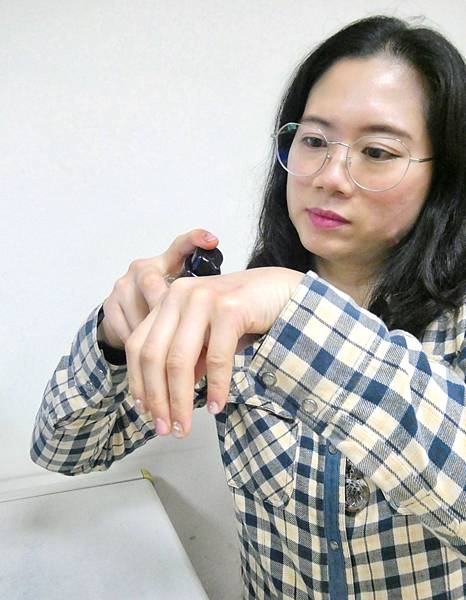 Jessica使用在手,會連同指甲一起保養,使用適量的絲柔賦活菁萃油在手上,2手搓揉,按摩。