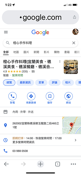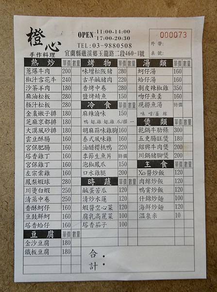 朋友就跟Jessica說很久沒吃合菜、中式料理了,Jessica就以這個為目標上網搜尋,立馬就看到一家手作料理名叫「橙心手作料理」,還有停車場離礁溪市區也不遠。