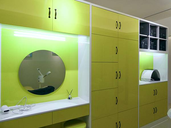 Jessica把所有的東西與包包放入櫃子後,就躺在洗臉貓的美容床上,躺起來好舒服唷!