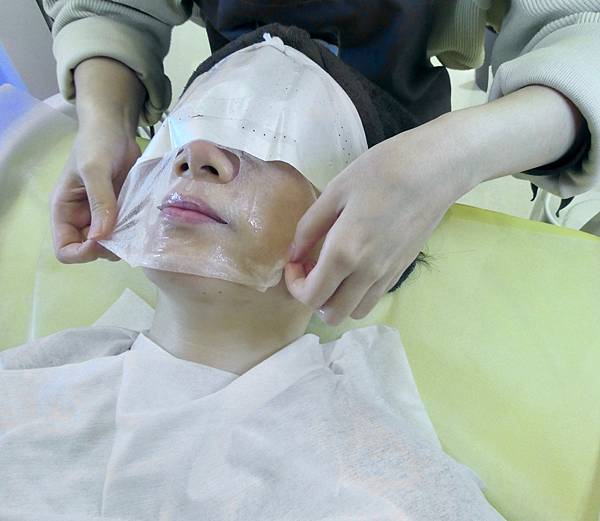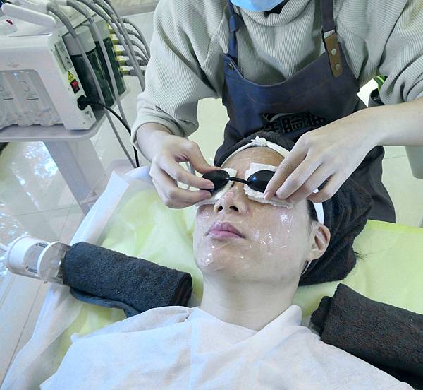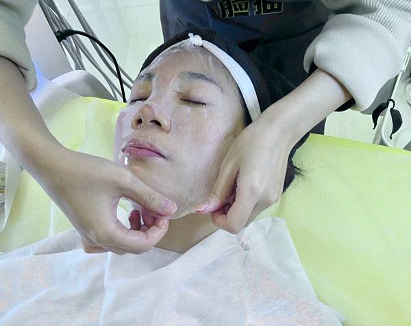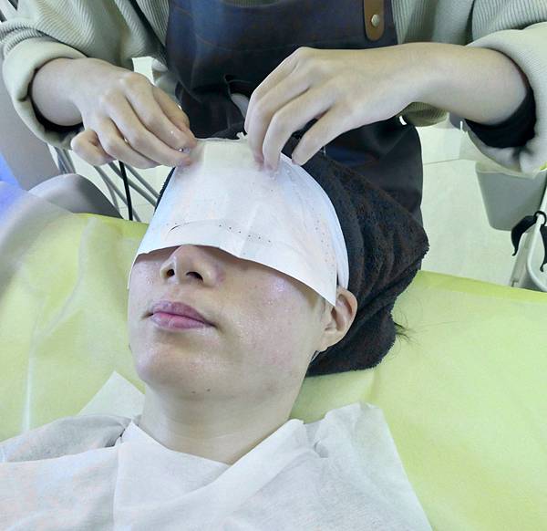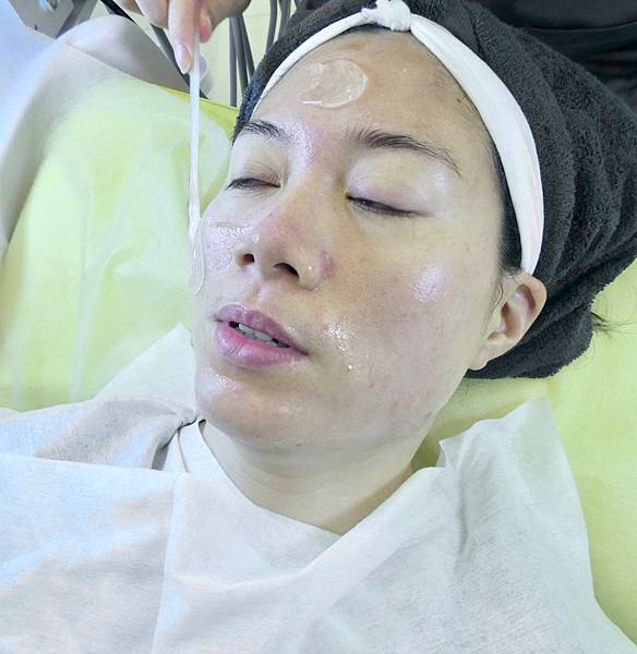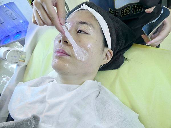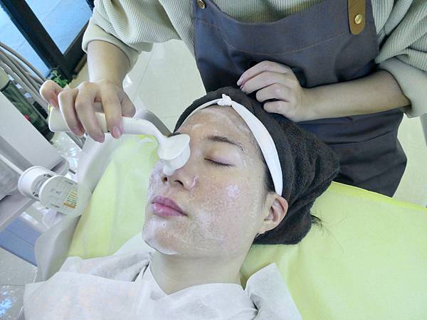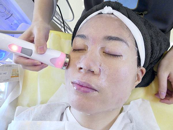 敷面膜的同時,美容師還會先用熱的導入儀幫Jessica做臉部肌膚的吸收面膜,再用冷導入儀去提升肌膚吸收面膜,等待一下時間給肌膚吸收,再取下面膜。