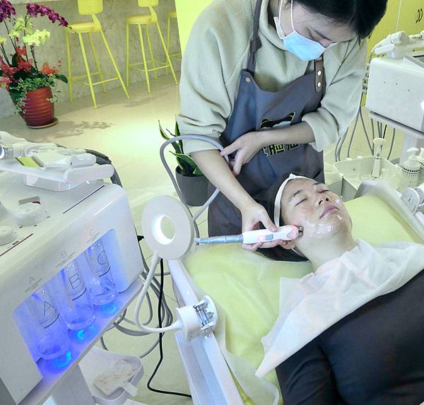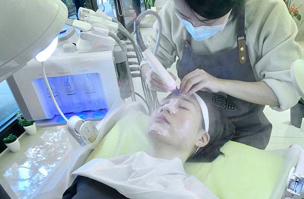 最特別的是利用儀器無創水光搭配精華液,補水鎖水,高壓氣+保養品透過微氣孔,高壓及小分子直接深入皮膚達到補水效果,感受也很舒服。