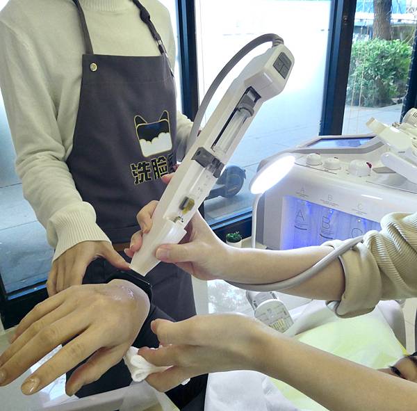 洗臉貓幫Jessica使用黃光光譜儀。