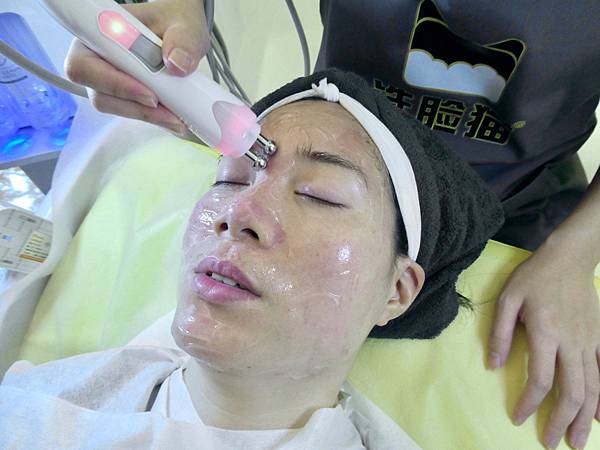 這兩個都利用儀器的射頻技術來達到護膚的效果,都是利用洗臉貓蘆薈修護凍膜加上儀器的按摩,全程真的超舒服,一直很想睡覺。