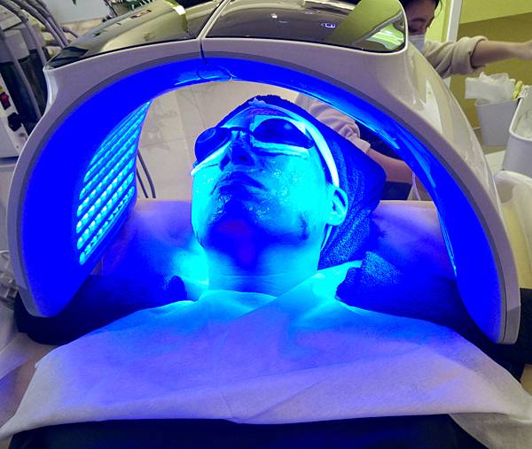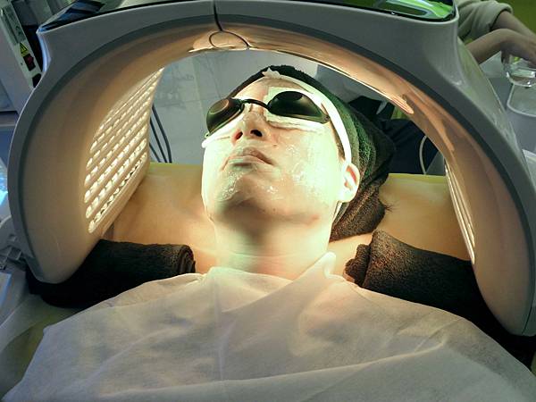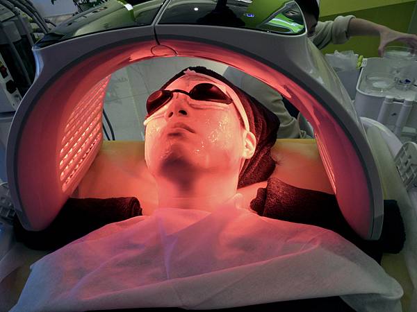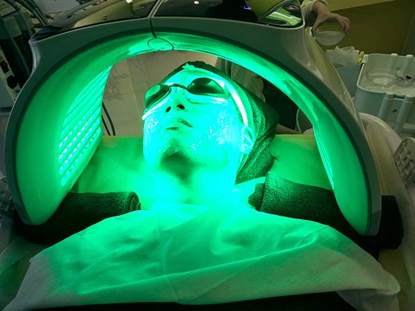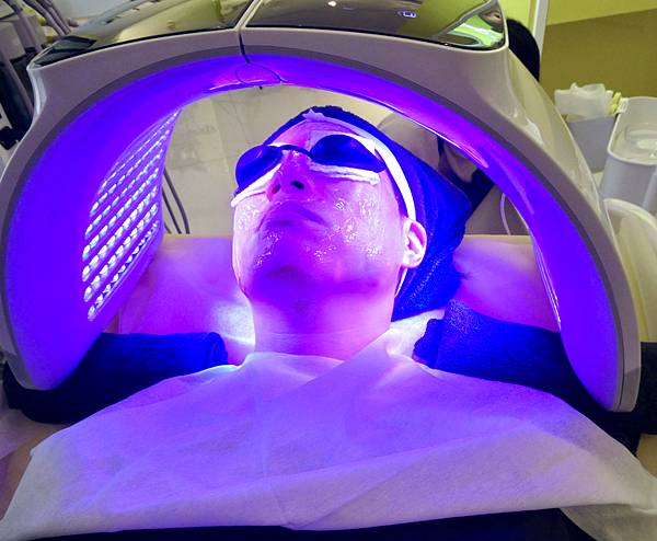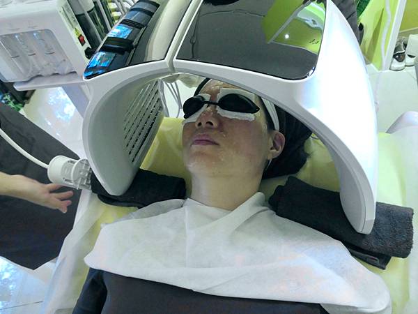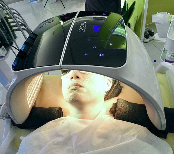 最後做告白泡沖,利用照光的方式,提亮膚色,光子水嫩膚+蘆薈凍膜,光有分很多顏色不同效果。