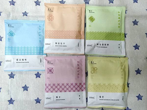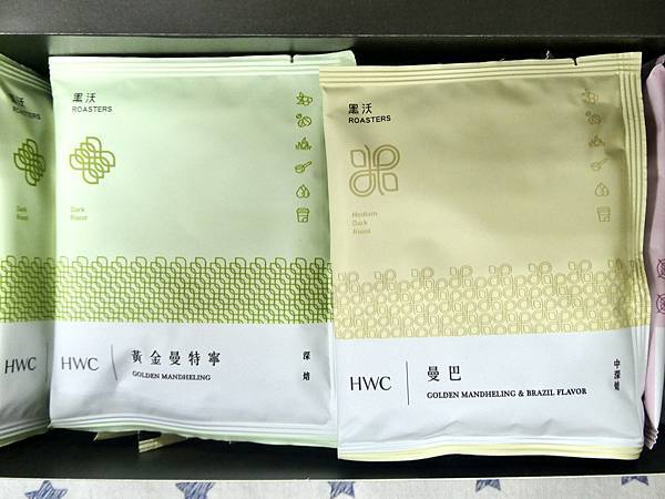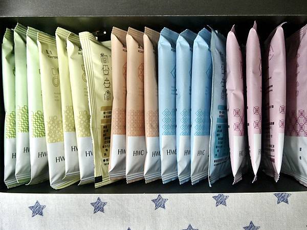 HWC黑沃咖啡-馬卡龍系列咖啡掛耳禮盒,一盒20入,可選擇綜合風味與單一口味,濾水器送的是綜合口味,五種口味(藍山風味、黃金曼特寧、曼巴、阿拉比卡與摩卡),黑沃咖啡官方網站一盒是300元,等於一包15元,價格還可以。
