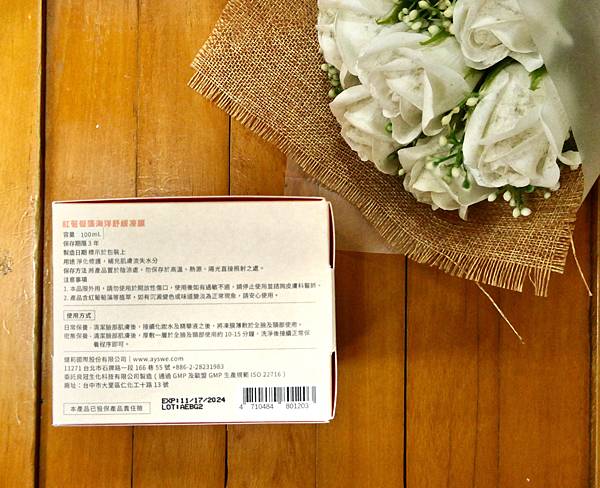 回到家後清潔肌膚後,使用化妝水+精華液,之後週期保養敷「AYSWE愛蕊友肌」「山海顏台灣在地植萃系列」的敏弱肌適用,曬後舒緩保濕凍膜,讓肌膚得到真正的舒緩,15-20分鐘洗掉凍膜後,最後用乳液或者乳霜鎖住營養。
