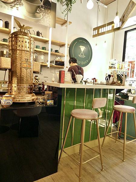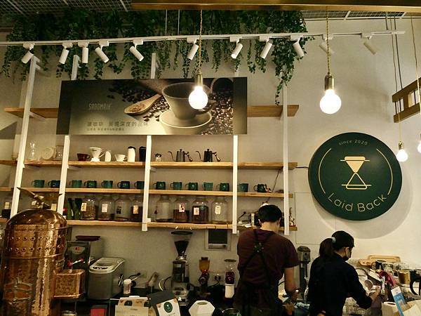 LaidBackCafe店裡很多有質感的設計,都是店裡自行設計的,還有在櫃檯上看到古董又金光閃閃的咖啡機,很顯眼,超級美。