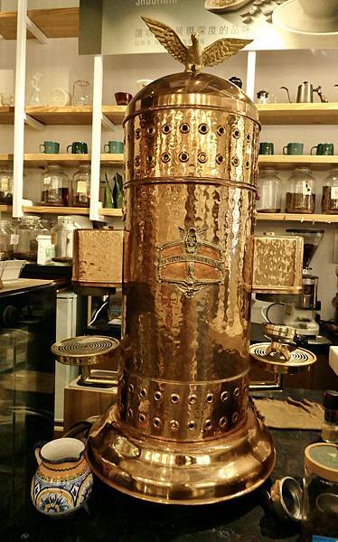Jessica立馬看到這個壺,這個壺好特別唷!LaidBackCafe的店長說,妳們要不要用這個「比利時壺」喝喝看咖啡,我可以幫妳們用屬於這個比利時壺適合的中深焙咖啡,幫妳們煮一壺來品嚐看看,Jessica就說好呀!