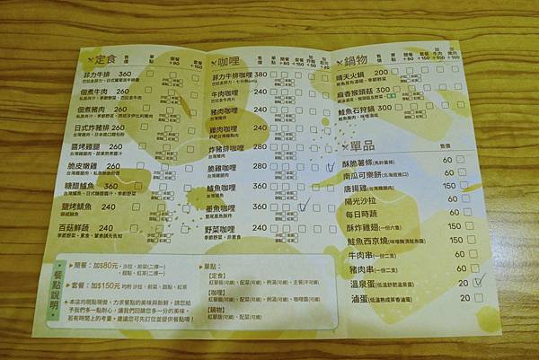 回到晴天廚房x初夏小滿的一樓,我跟閨蜜開始看菜單決定要點什麼餐點,我們點了兩道咖哩套餐,一個在另外加上起司,❤️!