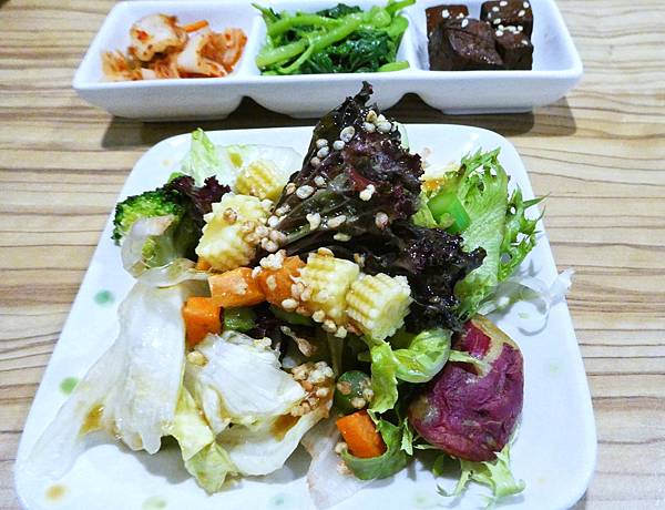 上面是三種配菜(可續);下面是沙拉(不可續)。