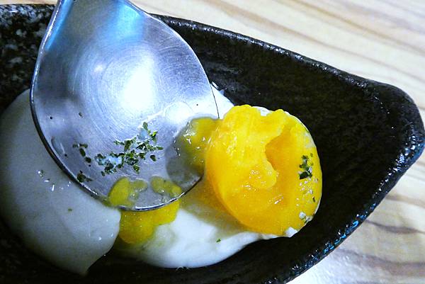 晴天廚房x初夏小滿的溫泉蛋,不是Jessica所認知的溫泉蛋,我還以為會更水嫩,蛋液會流出的那種。微半生,口感滑順。