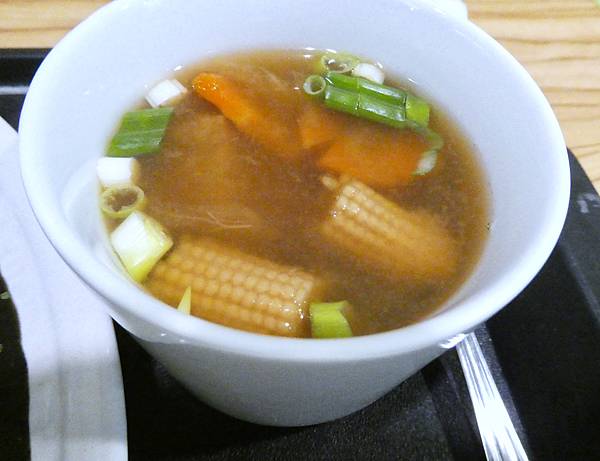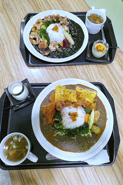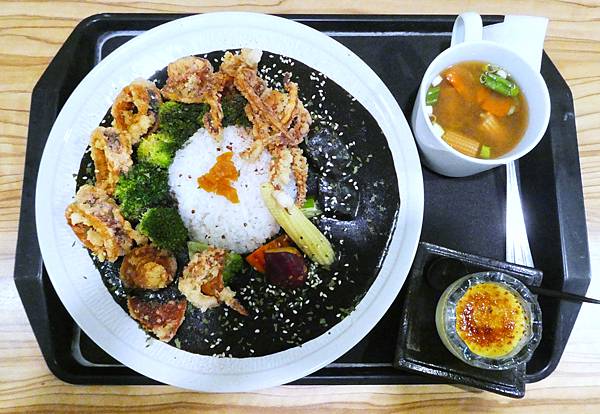 Jessica我點的套餐,墨魚咖哩套餐,墨魚不可續、咖哩醬可續、,甜點烤布蕾,湯一樣是蔬菜味增湯,可續,飯也是紅藜飯可續。