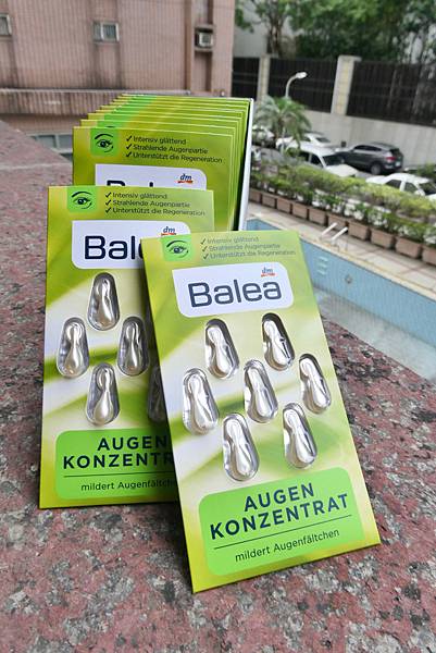 眼周保養的重要/眼周精華油ptt/眼周精華油推薦/德國旅遊必買保養品-DM超商推出的Balea綠茶眼部緊緻精華油7入/1片。