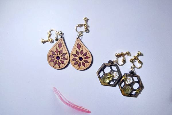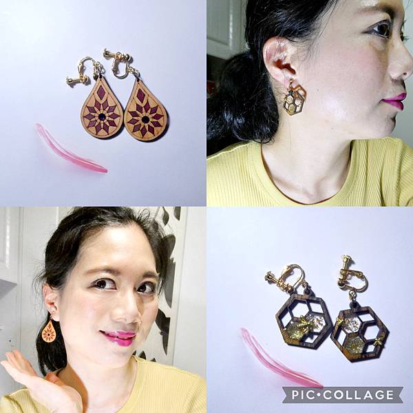 最後我挑了兩款實木設計耳環,也改成夾式。