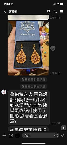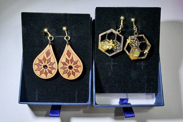 因此我就上網搜尋,我不喜歡那種大眾化的耳環,我喜歡有點設計又跟別人不一樣的耳環,就這樣因緣際會找到了一家不走大量生產的商業路線,選擇木製飾品的小眾市場,所以設計都有紀念性跟質感,這是他們的設計理念,設計師台北、新竹、高雄都有,除了有設計師設計的飾品外,還有客製化。客製化商品請詢問臉書粉專。