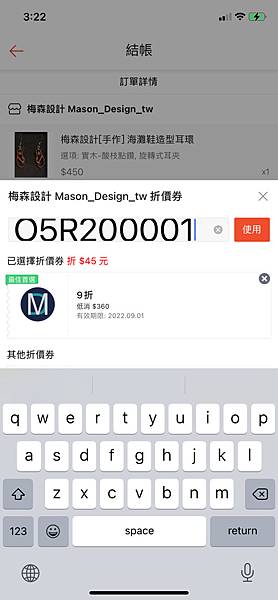 優惠9折折扣碼:O5R200001(適用在蝦皮購物)的梅森設計。蝦皮搜索店家:梅森設計。