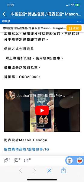 在這裡備註說明,我的9折100張折扣卷,不是只有我介紹的三款能用,而是所有的蝦皮賣家梅森設計裡面的飾品都可以使用唷!裡面都是美麗的設計師設計飾品,以木頭為主。
