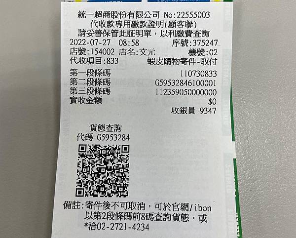 但因為沒有滿額,所以還要加上店到店的運費60元,所以實際費用405+60=465元。