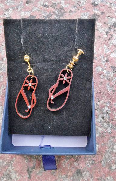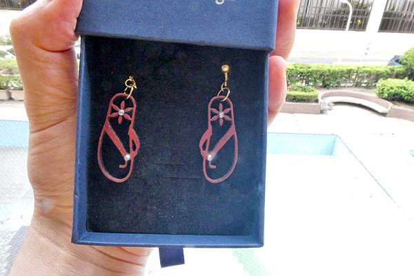 這次看到一款設計耳環很美,而且很適合夏天,是夏天去海邊,我們必穿的海灘造型拖鞋(夾腳拖鞋),但設計師原本設計是壓克力的。