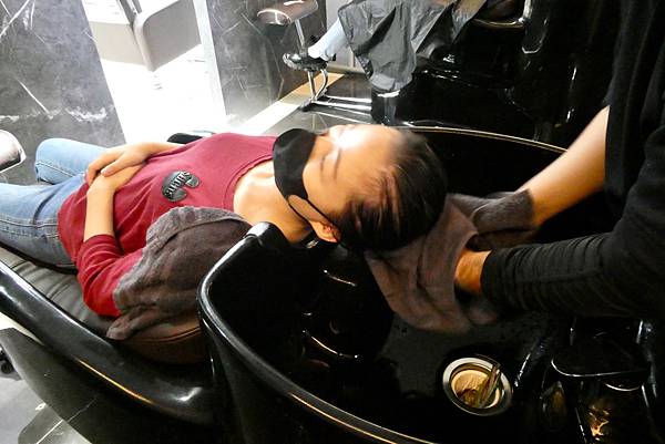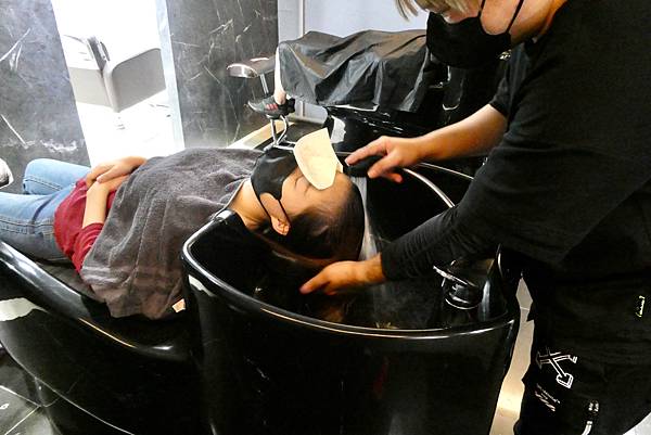 洗髮的過程中,問妹妹要不要做護髮,妹妹說不用,設計師就說,那我幫妳做快速護髮,妳的髮質是細軟髮質,不適合太滋潤的護髮。