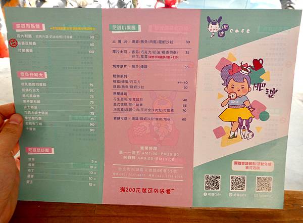 肥婆cafe的菜單上品名與餐點都有可愛的名字,食物也很好吃。肥婆cafe也可以團體會議/活動外燴皆可洽談。直接私訊臉書粉專。