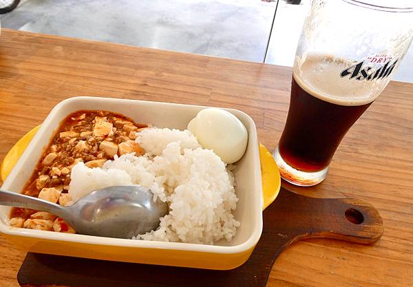 閨蜜點的是老闆最愛麻婆豆腐飯與黑麥啤酒。
