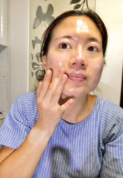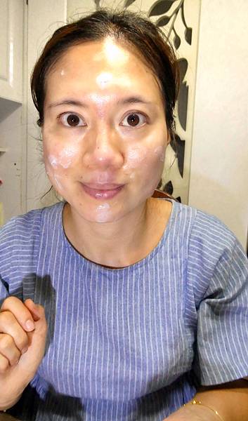 先把臉部卸除彩妝與清潔肌膚後,完全擦乾水分,取適量塗抹於臉部。