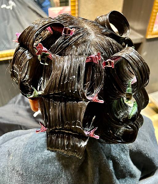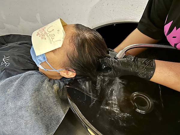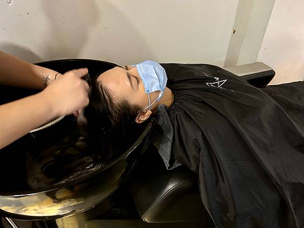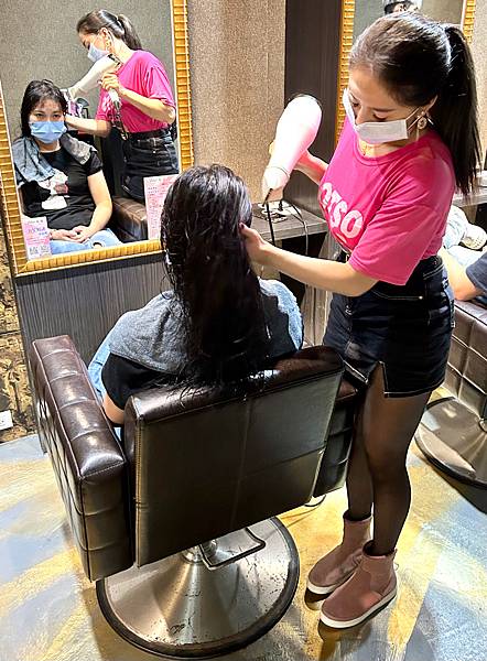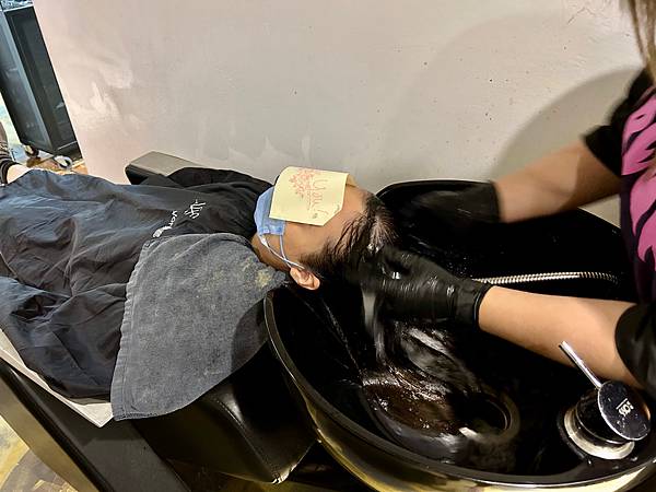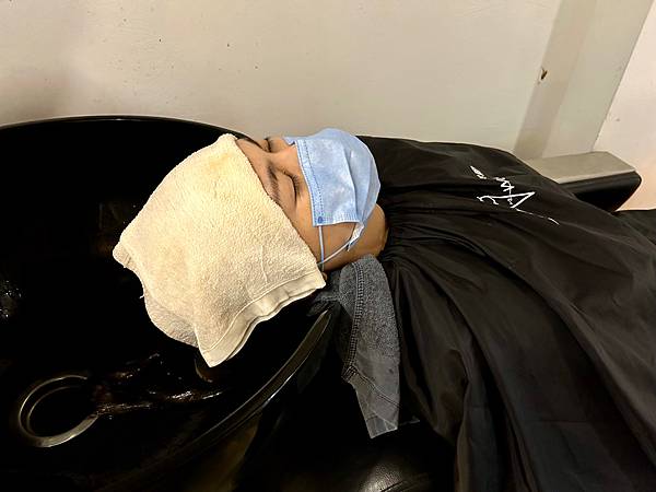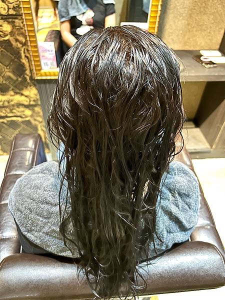 在沖洗掉護髮素之前,還幫客人做熱敷頭髮讓護髮素再次吸收,還有熱敷脖子,好貼心。