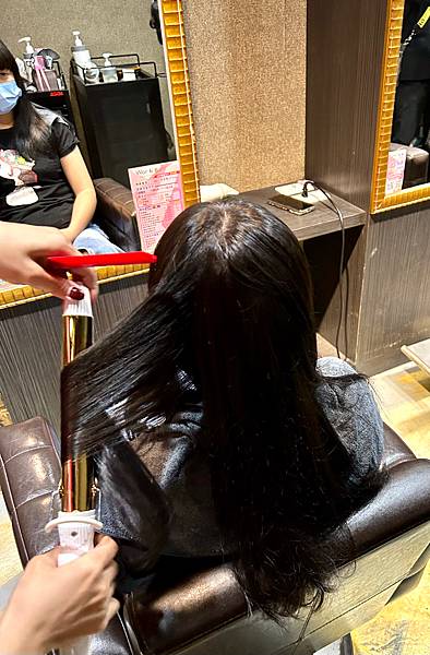 姐妹染髮還想順便做護髮,因此設計師說姐妹的髮質適合做閃耀柔潤護二段式。