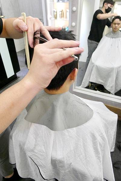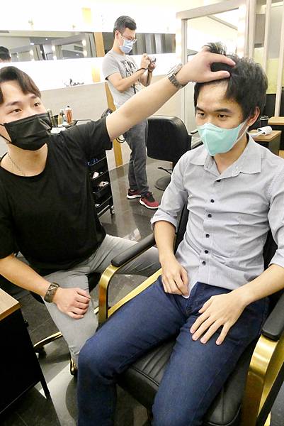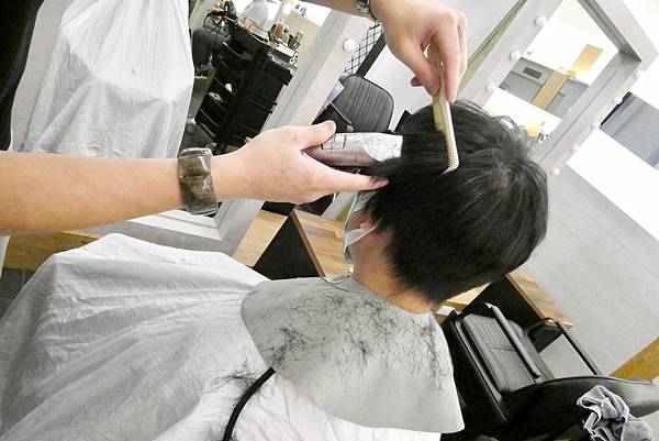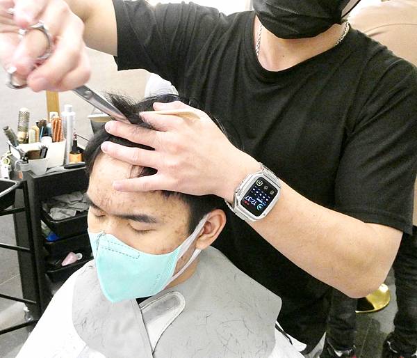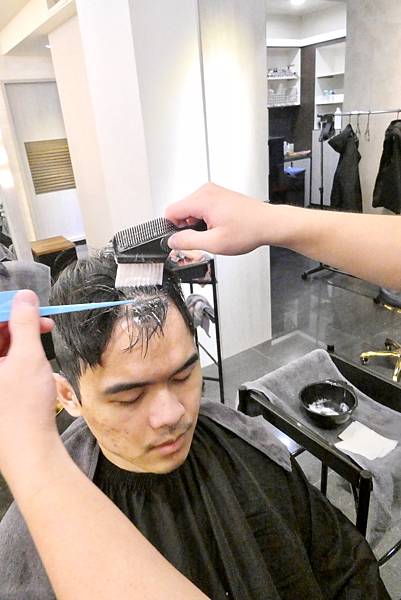 開始燙髮之前,阿丹設計師先檢查他的髮質,發現他的髮質很健康,是超健康的健康頭髮,不用護髮,所以阿丹設計師一開始先幫他剪頭髮。