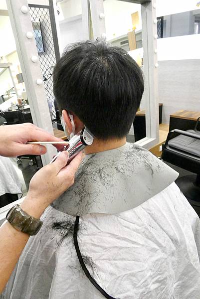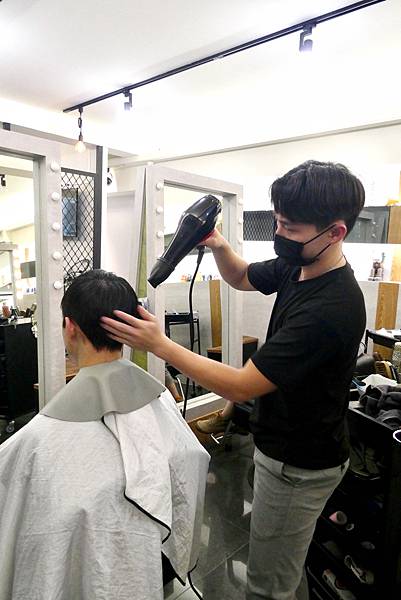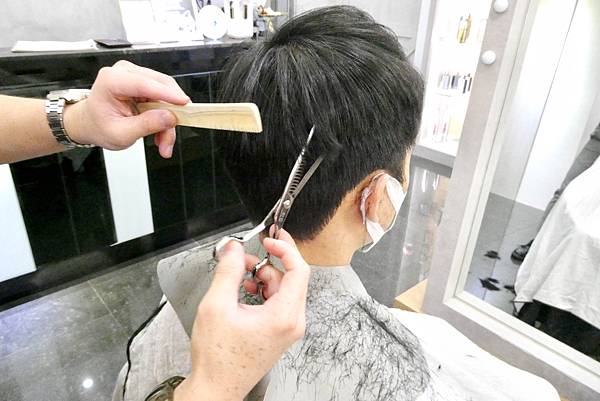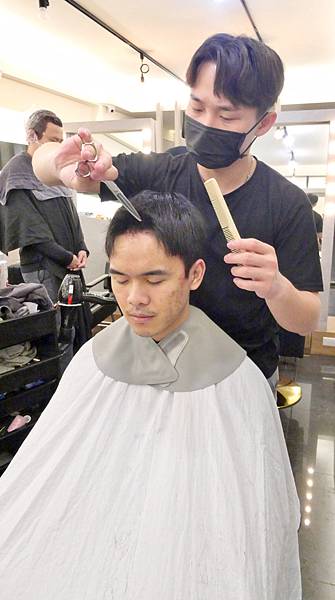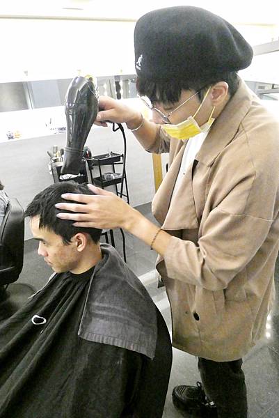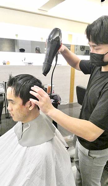 洗完頭後,回到位置上去做最後的吹整與修剪,然後再教他怎麼整理頭髮。