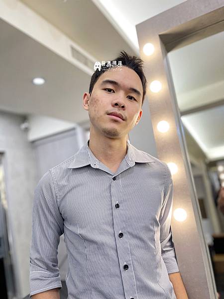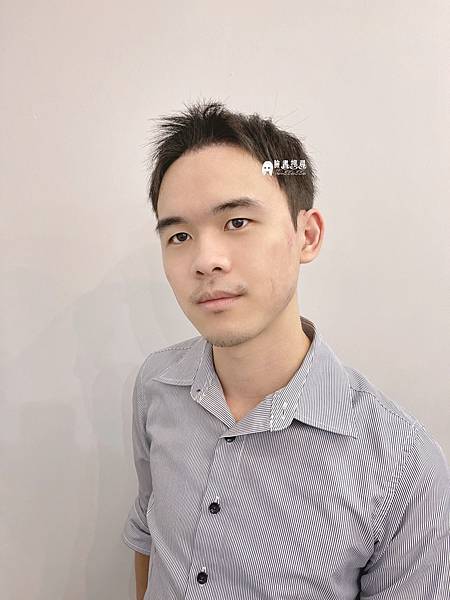 當天設計師阿丹,很細心的跟他討論,結果還是決定燙韓系髮型,阿丹設計師很仔細看他的髮型,然後給很中懇的建議,他說韓系髮型不是只有「逗號」瀏海,還有其他的髮型,而且你有美人尖,美人尖很美,我幫你把瀏海往上燙,兩邊維持貼著肌膚,既能露出美人尖,也不會讓其他地方破壞你的造型。