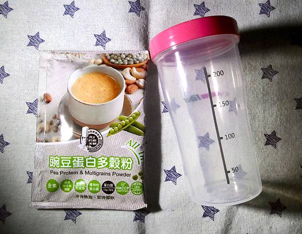 最近朋友也跟我推薦沖泡式的,這樣就不用常常去外面買,很麻煩,有時買一大瓶還要注意保存期限,買這樣沖泡式的,只要買一盒回家,獨立包裝,拿出一包即可沖泡出好喝的碗豆加穀粉的植物豆漿,裡面還有穀物粉末,不只喝得到豆漿,還有穀物的營養。
