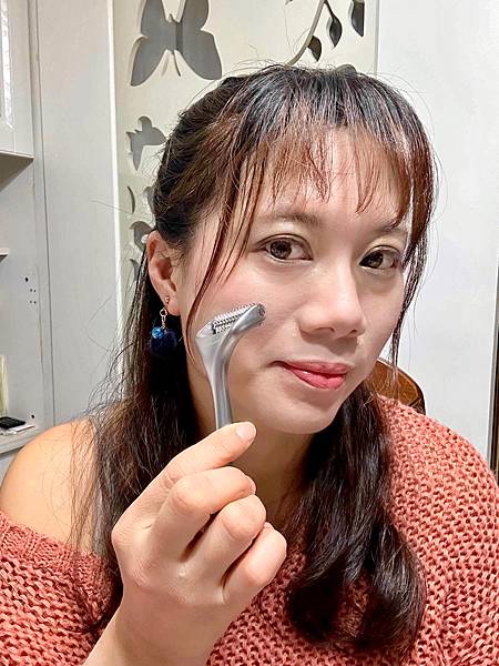 臉部滾輪有144個細小滾輪,可以在敷面膜時由下往上,由內而外的使用滾輪拉提,順便幫助臉部循環。