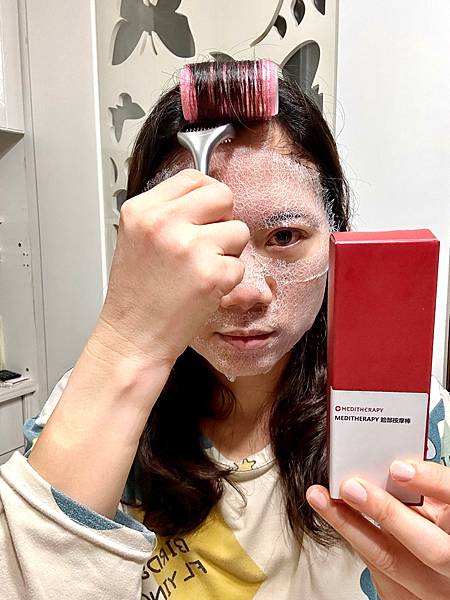 meditherpy臉部滾輪,不是只能使用在面膜上,妳也可以使用在精華液上,使用精華液搭配由下而上、由內而外,拉提按摩一下也很棒唷!不一定一定要搭配同款面膜。