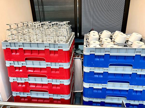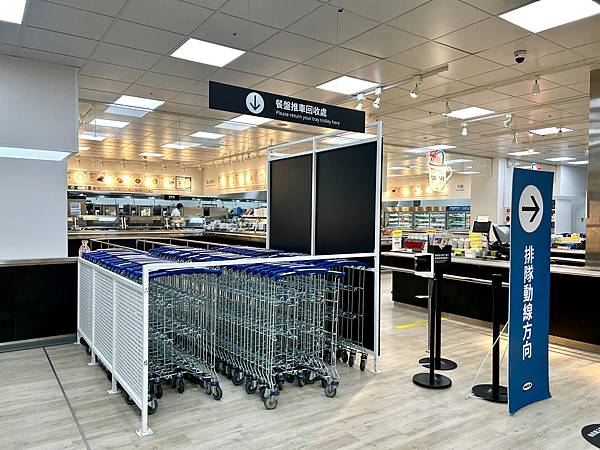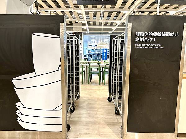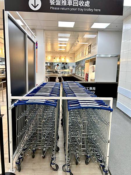 還有很多餐盤回收區,空間大,這樣規劃很好,這樣回收就不用走太遠,還有餐車,拿餐點到位置上很方便。回收餐盤也是,不用拿著太重。