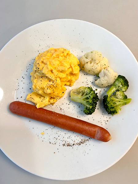 這一盤59元,花椰菜我只有使用鹽巴跟胡椒,菜很甜,新鮮;炒蛋,很嫩,不會乾,裡面很嫩,而且我也只有使用鹽巴;瑞典熱狗,熱狗很好吃,我喜歡吃原味用鹽巴,這條熱狗很好吃。