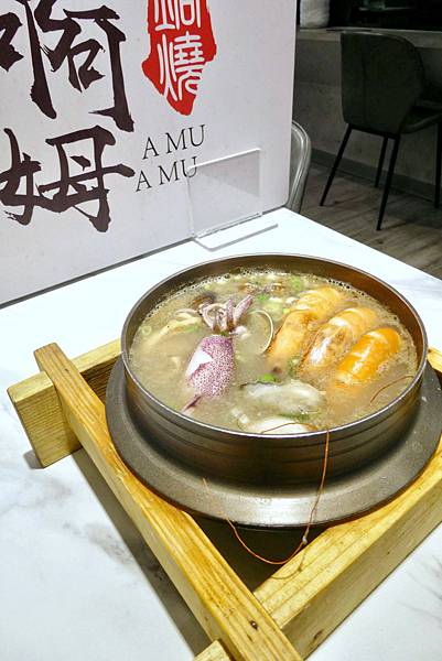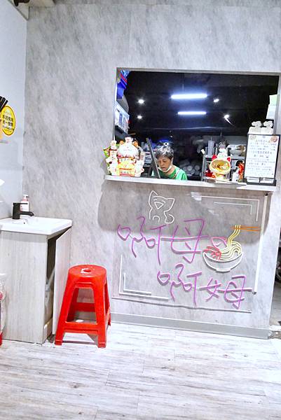 有海鮮料理,所以啊母啊姆鍋燒麵在櫃檯旁有放洗手乳跟洗手台,給客人吃海鮮撥蝦殼還有吃蛤仔食弄髒手可以洗手,很貼心呢!