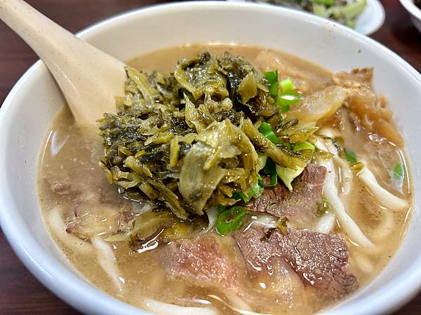 再加上牛肉麵必加的酸菜,他們家的酸菜也很好吃,搭配清燉湯頭。