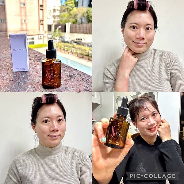 我的使用方法是早晚清潔肌膚後,含晚上的卸妝,化妝水使用兩次之後,使用煥白無瑕VC精華,取適量滴入手掌,均勻塗抹於臉上脖子