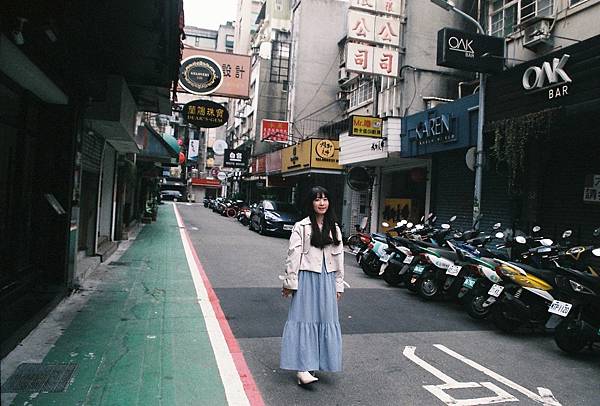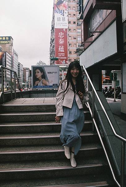 我的模特兒是朋友,不是專業的人像模特兒,所以人像攝影姿勢,我都沒有要求,就是很隨性的街拍人像,我們就漫步在東區街頭一邊逛街一邊拍攝底片。